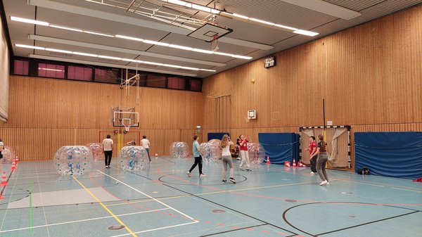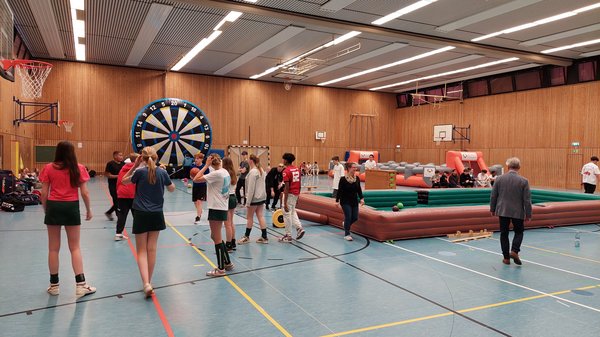 Nachmittags trafen sich dann alle Teilnehmer des Sportvergleichs zu Fun-Spielen wie Bumper Ball, Menschenkicker, Fußball-Billard und -Dart in den Sporthallen des Schulzentrums.