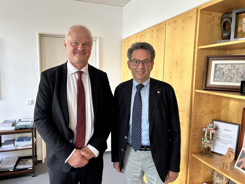 Sur und Ruthemeyer tauschten sich über die aktuelle politische Lage in Europa und die Beziehungen Soests zur französischen Partnerstadt Guérard aus. Beide waren sich einig, dass es nur in einem engen Zusammenspiel zwischen Frankreich und Deutschland möglich ist, die Energiewende voranzutreiben und dem Klimawandel, Krieg und Gewalt sowie Ungerechtigkeit in der Welt entgegenzuwirken.