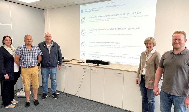 Die Vorbereitung für das digitale Baugenehmigungsverfahren haben in der Soester Verwaltung rund ein Jahr gedauert. Das war aufgrund der Komplexität der Anforderungen durchaus ambitioniert. Beteiligt waren Lydia Tasler, Kirsten Guderian, Nicole Büttner und Philipp Weinkopf von der AG Bauordnung sowie Arbeitsgruppenleiter Lars Schober und David Dziuba von der AG Informationstechnik sowie Hilmar Seeger, Leiter der AG Organisation. Alle Beteiligten sind aber mit dem Ergebnis der Vorbereitungen sehr zufrieden und vor allem von den Vorteilen des digitalen Verfahrens bei den internen Arbeitsabläufen sehr überzeugt.