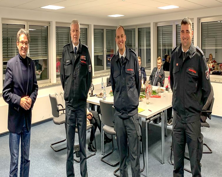 Stadtbrandinspektor Christoph Blume als neuer Leiter der Feuerwehr sowie Stadtbrandinspektor Thorsten Krabbe als Stellvertretender Leiter nahmen die Urkunden im coronabedingt kleinen Kreis in der Feuerwache entgegen. Bürgermeister Dr. Ruthemeyer überreichte außerdem dem langjährigen Leiter der Feuerwehr Jürgen Wirth seine Ernennungsurkunde zum Ehrenwehrführer.