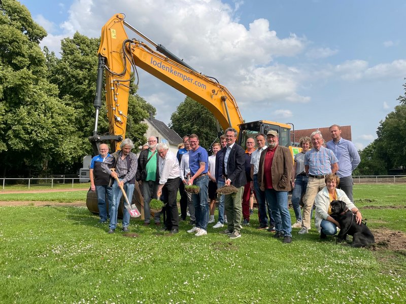 Bürgermeister Dr. Eckhard Ruthemeyer gab gemeinsam mit Vertreterinnen und Vertretern des Sportauschusses, der Verwaltung unbd des Stadtsportverbandes den Startschuss für die Sanierungsarbeiten. Sie sollen in den Herbstferien 2023 weitgehend abgeschlossen sein. Abhängig von der Witterung und dem damit verbundenen Wachstums des neuen Rasens wären die Sportfllächen dann im Januar 2023 wieder komplett benutzbar. Neben dem SV Westfalia Soest