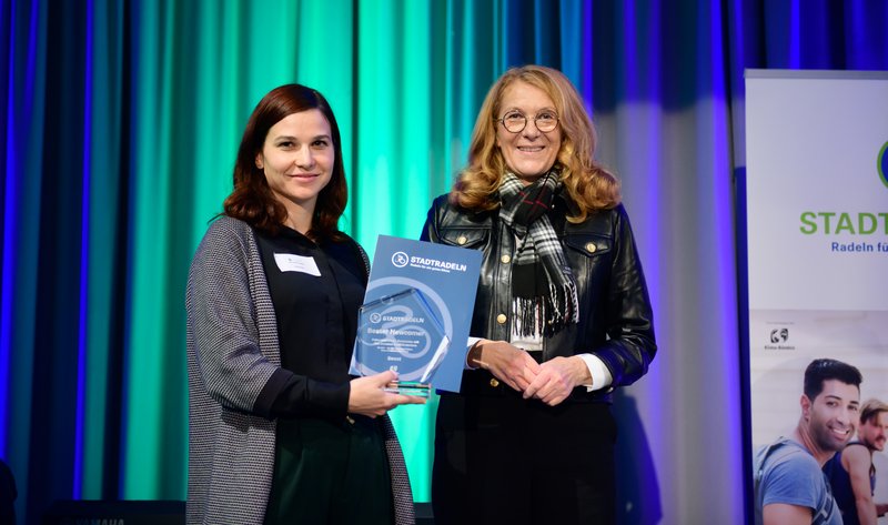 In der Kategorie „Fahrradaktivste Kommune mit den meisten Radkilometern“ in Deutschland erreichte Soest den Titel „Bester Newcomer“ in der Kategorie der Städte bis 50.000 Einwohner. Insgesamt 136.730 Kilometer legten die Soesterinnen und Soester, die sich für die Aktion registriert hatten, zurück. Dafür gab es jetzt bei der offiziellen Siegerehrung der Aktion in Saarbrücken am 30. November 2022 eine Urkunde, die Jasmin Hornstein aus der Abteilung Stadtentwicklung der Stadt Soest aus den Händen der saarländischen Ministerin für Umwelt, Klima, Mobilität, Agrar und Verbraucherschutz, Petra Berg, entgegennahm.