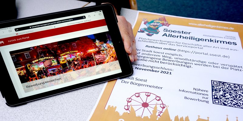 Bei dem neuen Bewerbungssystem handelt es sich um ein Projekt, das Soest im Rahmen der Digitalen Modellregion mit Fördermitteln des Ministeriums für Wirtschaft, Innovation, Digitales und Energie entwickelt hat. „Wir starten mit dem Bewerbungsverfahren für die Allerheiligenkirmes, aber das System ist prinzipiell auch für andere Veranstaltungen in Soest nutzbar“, erklärt Klaus Matteikat, Marktmeister der Soester Kirmes. Ulla Gerke als Abteilungsleiterin Personal und Organisation ergänzt, dass das System ferner von anderen Kommunen für deren Großveranstaltungen kopiert werden darf. „Diese Übertragbarkeit auf andere Kommunen ist ein wesentliches Element aller Projekte der Digitalen Modellkommune.“