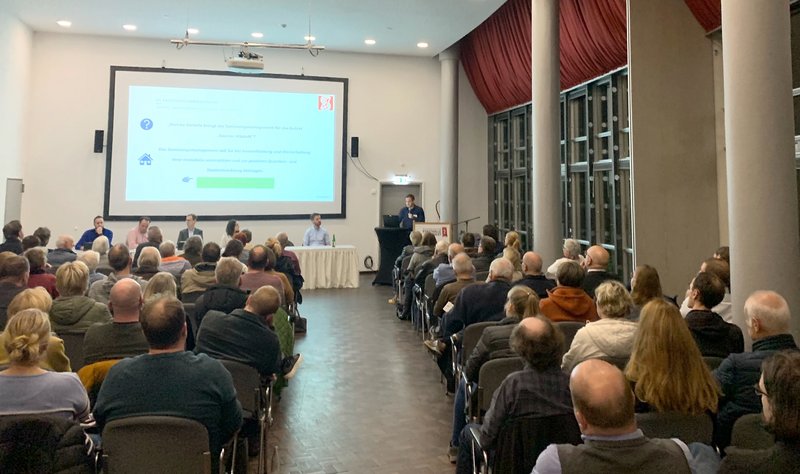 In Informationsveranstaltungen wirbt die Stadt für ihr Vorgehen. Dabei war insbesondere in der Veranstaltung für die Altstadt das Interesse der Immobilieneigentümerinnen und -eigentümer sehr groß.