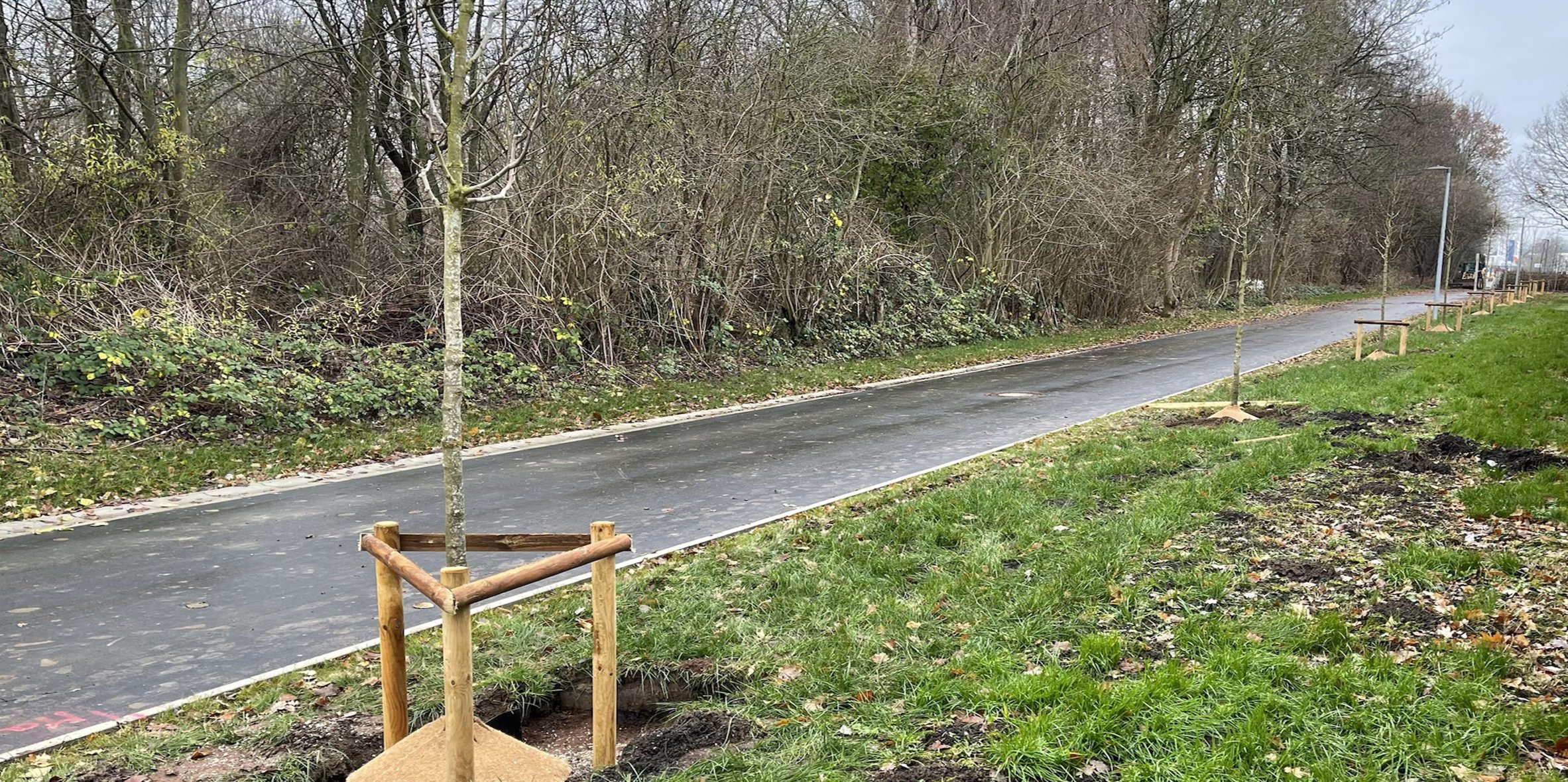 34 neue Bäume entlang des Radwegs an der WLE-Trasse
