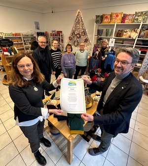 Bürgermeister Dr. Eckhard Ruthemeyer und Stadtbaurat Matthias Abel freuen sich über die abermalige Verlängerung des Titels: „Wir sind jetzt seit zehn Jahren Fair-Trade-Town – das zeigt, wie stark der Gedanke der Nachhaltigkeit in unserem Handeln verankert ist.“ Lokale Akteure aus Politik, Zivilgesellschaft und Wirtschaft arbeiten für das gemeinsame Ziel zusammen. Das besondere Lob der beiden gilt dabei dem „Initiativkreis Eine Welt – Fair Trade Soest e.V.“, der auf ehrenamtlicher Basis im Grandweg das lokale Fair-Trade-Geschäft betreibt. Dieses Angebot kommt sowohl bei heimischen als auch bei auswärtigen Kundinnen und Kunden gut an, weiß das Team zu berichten. Auch für die Vorweihnachtszeit erwartet es wieder eine gute Nachfrage nach den angebotenen Waren.