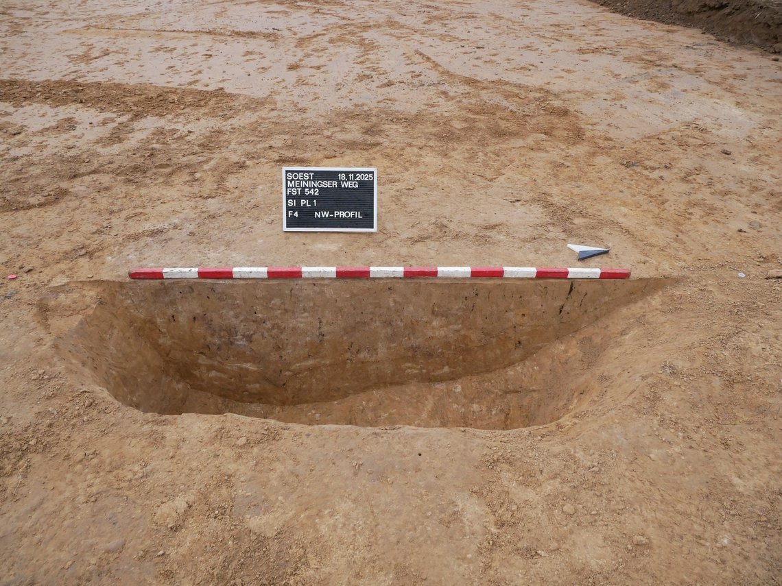 2018 wurden im Vorfeld der Bebauung im Soest Süden Prospektionsschnitte von der Stadtarchäologie angelegt. Im nächsten Umfeld dieses Geländes sind eisenzeitliche Befunde und Funde bekannt, sodass auch hier mit archäologischen Entdeckungen gerechnet werden konnte. Zahlreiche Verfärbungen im Boden konnten dokumentiert werden, aus einem dieser Befunde konnte Material für eine 14C-Analyse geborgen werden, die eine Datierung in das Spätneolithikum ergab. Allerdings kann auch für diese Fundstelle von einem mehrperiodigen Siedlungsplatz ausgegangen werden.