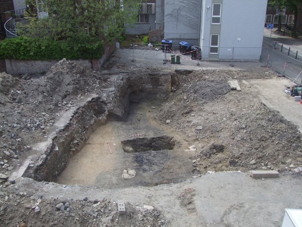 Der Neubau eines Einfamilienhauses in der Pollhofstraße machte eine archäologische Untersuchung notwendig. Die Baufläche stellte sich als nahezu vollständig mit archäologischen Befunden bedeckt heraus. Wie häufig in der Altstadt überlagerten auch hier jüngere Befunde die älteren.