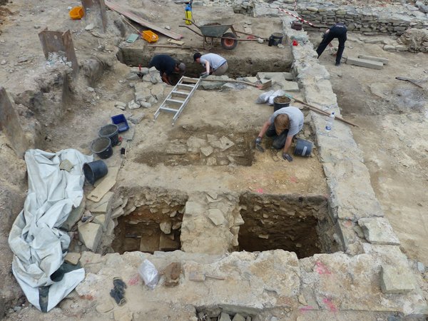 Die städtische Sanierungsmaßnahme Markt wird natürlich von der Stadtarchäologie betreut. Durch baubegleitende Grabungen in den 1990-er Jahren kann die Archäologie relativ genau einschätzen, wo mit welchen Befunden zu rechnen ist.