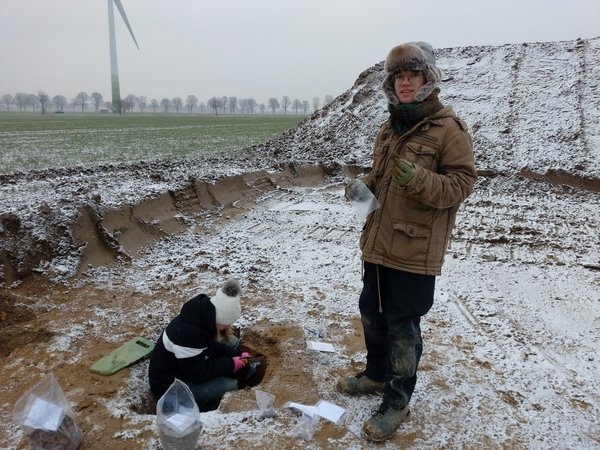 Auch vor dieser Errichtung einer WEA ist die Stadtarchäologie tätig. Bislang ist vor allem eine größere Grube mit Keramikfunden spannend, da sie eindeutig eine vorgeschichtliche menschliche Aktivität an diesem Ort belegt.
